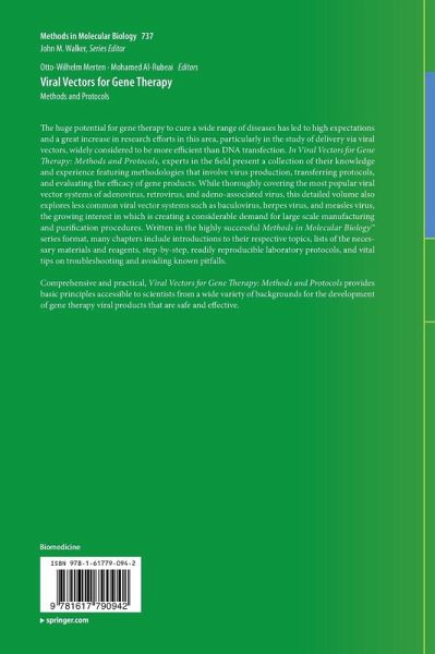 "Intended for practitioners involved in the preclinical and clinical applications of gene therapy vectors. ... students, scientists, and physicians specializing in gene therapy will find this book extremely useful. ... Given the rapid advances in the field of gene therapy, this book is essential, providing useful information on the methodologies that involve virus production, transferring protocols, and evaluation of the efficacy of gene products and other important methodological concepts in gene therapy." (Omer Iqbal, Doody's Review Service, September, 2011)