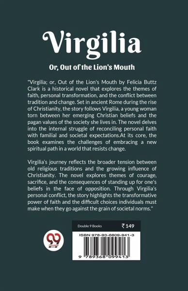 Virgilia; or, Out of the Lion's Mouth by Felicia Buttz Clark is a historical novel that explores the themes of faith, personal transformation, and the conflict between tradition and change. Set in ancient Rome during the rise of Christianity, the story follows Virgilia, a young woman torn between her emerging Christian beliefs and the pagan values of the society she lives in. The novel delves into the internal struggle of reconciling personal faith with familial and societal expectations. At its core, the book examines the challenges of embracing a new spiritual path in a world that resists change. Virgilia's journey reflects the broader tension between old religious traditions and the growing influence of Christianity. The novel explores themes of courage, sacrifice, and the consequences of standing up for one's beliefs in the face of opposition. Through Virgilia's personal conflict, the story highlights the transformative power of faith and the difficult choices individuals must make when they go against the grain of societal norms.