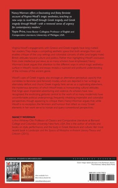 In Woolf's writings Greece and Greek tragedy in particular shape an exoticized aesthetic space that both emerges from and enables critique of the cosy settings and colonialist conceits of elite (and largely male) British attitudes toward culture and politics. Rather than highlighting Woolf's exclusion from male intellectual purviews, as so many scholars have emphasized, this book urges attention on how her engagements with Greek tragedy both collude with and challenge modernist aesthetics and contemporary politics. Woolf's encounters with and uses of Greek tragedy fantasize an alternative perceptual capacity that correlates to feminine (and feminist) modes, which are depicted in her writings as alternately defiant and choral. In this scheme, Greek tragedy is something of a dreamland, the mysterious dynamics of which Woolf treats as transcending cultural attitudes that hinge upon imperialist adventuring and violence. As scholars have recognized, especially in recent decades, the exoticizing gestures central to the work of so many modernists have uncomfortable political underpinnings, since they frequently inhabit imperialist and colonialist perspectives while appearing to critique them. Unlike most scholars, Nancy Worman argues that Woolf is no exception, although the feminism and humour that inflects so many "Greek" elements in her work saves it from the worst offenses.