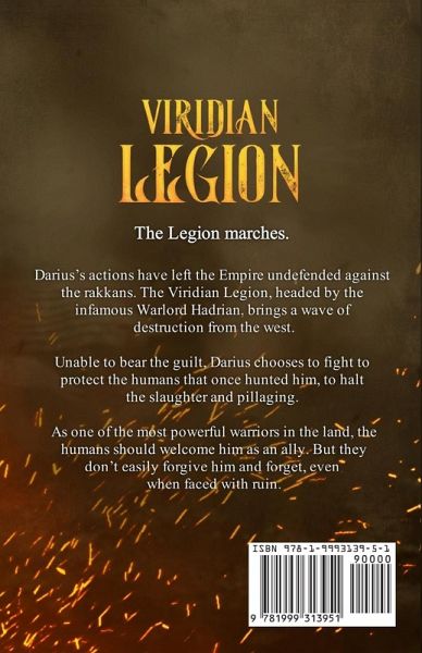 The Legion marches. Decades of hate is wrought. Darius's actions have left the Empire undefended against the rakkans. The Viridian Legion, headed by the infamous Warlord Hadrian, brings a wave of destruction from the west. Unable to bear the guilt, Darius chooses to fight to protect the humans that once hunted him, to halt the slaughter and pillaging. As one of the most powerful warriors in the land, the humans should welcome him as an ally. But they don't easily forgive him and forget, even when faced with ruin. ¿Darius's enemies finally seize their chance for vengeance.