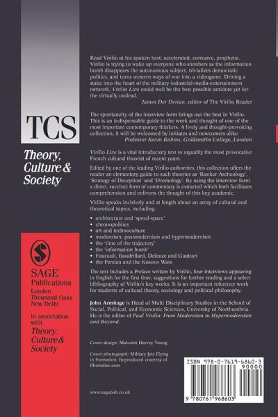 Preface - Paul Virilio Introduction - John Armitage PART ONE: ON THEORY, CULTURE AND SOCIETY Interview One: From Modernism to Hypermodernism and Beyond - John Armitage PART TWO: ON ARCHITECTURE Interview Two: Paul Virilio and the Oblique - Enrique Limon Interview Three: The Time of the Trajectory - Andreas Ruby PART THREE: ON SPEED-SPACE AND CHRONOPOLITICS Interview Four: Speed-Space - Chris Dercon Interview Five: Perception, Politics and the Intellectual - Niels Br[um]ugger Interview Six: The Information Bomb - Friedrich Kittler PART FOUR: ON ART, TECHNOCULTURE AND THE INTEGRAL ACCIDENT Interview Seven: Paul Virilio - J[ac]er[ci]ome Sans Interview Eight: Paul Virilio - Dominique Joubert & Christiane Carlut Interview Nine: The Dark Spot of Art - Catherine David Interview Ten: Landscape of Events Seen at Speed - Pierre Sterckx Interview Eleven: Not Words but Visions! - Nicholas Zurbrugg PART FIVE: ON THE STRATEGIES OF DECEPTION Interview Twelve: The Kosovo W@r Did Take Place - John Armitage Suggested Further Reading Select Bibliography of the Works of Paul Virilio - John Armitage