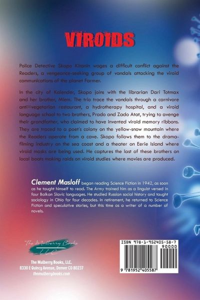 Police Detective Skopo Kitanin wages a difficult conflict against the Readers, a vengeance-seeking group of vandals attacking the viroid communications of the planet Farmer. In the city of Kalender, Skopo joins with the librarian Dari Totmax and her brother, Mlem. The trio trace the vandals through a carnivore anti=vegetarian restaurant, a hydrotherapy hospital, and a viroid language school to two brothers, Prado and Zado Atat, trying to avenge their grandfather, who claimed to have invented viroid memory ribbons. They are traced to a poet's colony on the yellow-snow mountain where the Readers operate from a cave. Skopo follows them to the dramafi lming industry on the sea coast and a theater on Eerie Island where viroid masks are being used. He captures the last of these brothers on local boats making raids on viroid studies where movies are produced.