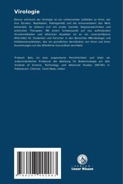Dieses Lehrbuch der Virologie ist ein umfassender Leitfaden zu Viren, der ihre Struktur, Replikation, Pathogenität und die Immunantwort des Wirts behandelt. Es befasst sich mit viraler Genetik, Diagnosetechniken und antiviralen Therapien. Mit einem Schwerpunkt auf neu auftretenden Viruskrankheiten und ethischen Aspekten ist es ein unverzichtbares Hilfsmittel für Studenten und Forscher in den Bereichen Mikrobiologie und Infektionskrankheiten, das ein gründliches Verständnis von Viren und ihren Auswirkungen auf die öffentliche Gesundheit vermittelt.