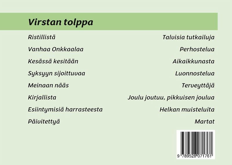 Toiveena 2024 vuoden veräjällä maailmalle rauhaa, eläimille ja luonnolle onnen tinakauhaa. Uuden vuoden aattona -20 pakkasessa ei ollut lauhaa, pakkasauringon kiteistä mielikuvitus punoi onnen helminauhaa. Tavaksi tulleella tyylilläni Virstan tolppa on lastattuna, entisaikaa rekiretkelle valjastettuna. Vuoden 2023-2024 vaihteessa vapaaehtoistyö hetkeksi tauotettuna, silmäleikkauksesta toipuminen todeksi otettuna.