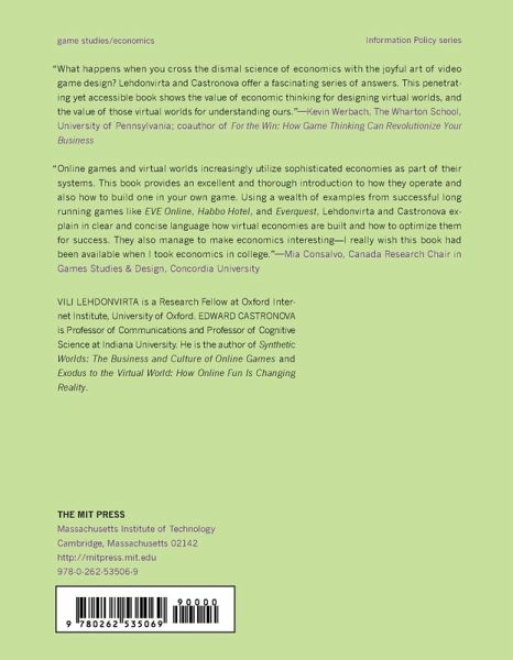 How the basic concepts of economics—including markets, institutions, and money—can be used to create and analyze economies based on virtual goods. In the twenty-first-century digital world, virtual goods are sold for real money. Digital game players happily pay for avatars, power-ups, and other game items. But behind every virtual sale, there is a virtual economy, simple or complex. In this book, Vili Lehdonvirta and Edward Castronova introduce the basic concepts of economics into the game developer's and game designer's toolkits. Lehdonvirta and Castronova explain how the fundamentals of economics—markets, institutions, and money—can be used to create or analyze economies based on artificially scarce virtual goods. They focus on virtual economies in digital games, but also touch on serious digital currencies such as Bitcoin as well as virtual economies that emerge in social media around points, likes, and followers. The theoretical emphasis is on elementary microeconomic theory, with some discussion of behavioral economics, macroeconomics, sociology of consumption, and other social science theories relevant to economic behavior. Topics include the rational choice model of economic decision making; information goods versus virtual goods; supply, demand, and market equilibrium; monopoly power; setting prices; and externalities. The book will enable developers and designers to create and maintain successful virtual economies, introduce social scientists and policy makers to the power of virtual economies, and provide a useful guide to economic fundamentals for students in other disciplines.