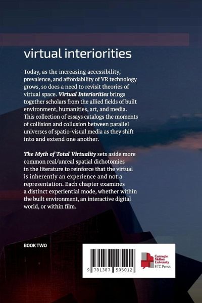 Contemporary virtual reality is often discussed in terms of popular consumer hardware. Yet the virtual we increasingly experience comes in many forms and is often more complex than wearable signifiers.This three-volume collection of essays examines the virtual beyond the headset. Virtual Interiorities offers multiple, sometimes unexpected entry points to virtuality-theme parks, video games, gyms, pilgrimage sites, theater, art installations, screens, drones, film, and even national identity. What all these virtual interiorities share are compelling cultural perspectives on distinct moments of environmental collision and collusion, liminality, and shifting modes of inhabitation, which challenge more conventional architectural conceptions of space. The Myth of Total Virtuality sets aside more common real/unreal spatial dichotomies in the literature to reinforce that the virtual is inherently an experience and not a representation. Each chapter examines a distinct experiential mode, whether within the built environment, an interactive digital world, or within film.