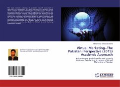 This book contains outcomes of academic research conducted to determine the development of Virtual Marketing in Pakistani context where customer satisfaction is based upon technology usage, attitude and perception of people in the country. The significance of this report is that quantitative approach has been used to ascertain the impact of selected independent variables on Customers Satisfaction. Recommended in this study is that continuous improvements should be made in computer skills of users at universities and organizational levels, virtual marketing companies should upgrade and improve their service level by improving products and services with secure payment options in order to overcome the reservations regarding the Customers Attitude towards Marketing Customers in Pakistan.