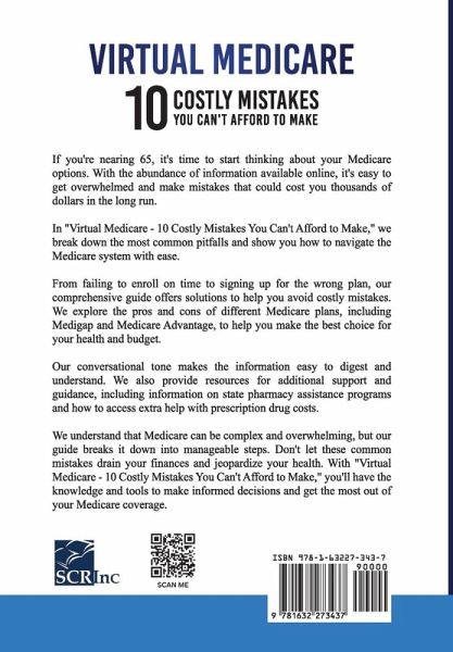The book has won the prestigious Gold Medal at the Readers' Favorite International Book Award for 2023 After Reading This Book, You Will: * Know what virtual Medicare pitfalls exist and how to avoid them expertly * Be ready to make significant Medicare decisions * Be knowledgeable about the costly penalties and how to steer clear As a Medicare expert and founder at Real Easy Medicare, Al has spent the last 35 years helping thousands of Medicare beneficiaries learn how to navigate their entry into Medicare. His goal has always been to make entry into Medicare and the enrollment process easier for ordinary Americans.This is no small task, as most Americans spend their entire working lives having their healthcare plans chosen by their employers. Now suddenly, they must try to make sense of a substantial national healthcare program with four parts, ten supplements, and thousands of plan options. To make matters worse, Medicare beneficiaries who get it wrong upfront can find themselves paying penalties they don't deserve and being trapped in plans that don't fit their needs, lifestyle, or budget. This book guides new beneficiaries through the critical decisions they'll need to make at the beginning of their journey while helping them expertly avoid the most common and costly mistakes that new beneficiaries often make.