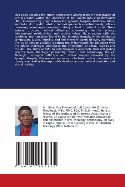 This book explores the ethical complexities arising from the integration of virtual realities within the landscape of the Fourth Industrial Revolution (4IR), illuminated by insights from the Synoptic Gospels-Matthew, Mark, and Luke. As the 4IR unfolds, technologies such as virtual reality (VR) are becoming increasingly prevalent, raising a host of ethical issues. These include profound ethical dilemmas concerning identity, privacy, interpersonal relationships, and societal values. By engaging with the teachings and narratives found in the Synoptic Gospels, which emphasize compassion, justice, humility, and the inherent worth of every individual, this study aims to establish a robust moral framework for grappling with the ethical challenges inherent in the intersection of virtual realities and the 4IR. The study adopts an interdisciplinary approach, thus integrating insights from theology, philosophy, ethics, and technology studies. Through theological reflection and ethical analysis informed by the Synoptic Gospels, this research endeavours to foster critical discourse and dialogue regarding the responsible development and ethical implications of virtual realities.