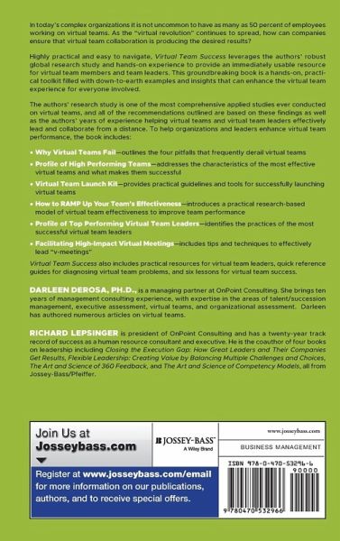 This book leverages robust research studies and provides a practical resource for virtual team members and leaders. Based on a research study which is one of the most comprehensive studies ever conducted on virtual teams, this book offers a wealth of solid recommendations. To help organizations and leaders enhance virtual team performance, the book includes information on: key challenges, factors for success, characteristics of effective virtual teams, a model for success, effective practices, enhancing performance of low performing teams. The book also includes sections on future challenges and issues.