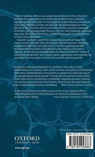 Christine Swanton offers a new, comprehensive theory of virtue ethics which addresses the major concerns of modern ethical theory from a character-based perspective. Discussion of many problems in moral theory, such as moral constraints, rightness of action, the good life, the demandingness of ethics, the role of the subjective, and the practicality of ethics, has been dominated by Kantian and Consequentialist theories, with their own distinctive conceptual apparatus. Virtue Ethics shows how a different framework can shed new light on these intractable issues. Swanton's approach is distinctive in that it departs in significant ways from classical versions of virtue ethics derived primarily from Aristotle. Employing insights from Nietzsche and other sources, she argues against both eudaimonistic virtue ethics and traditional virtue ethical conceptions of rightness. In developing a pluralistic view, she shows how different 'modes of moral acknowledgement' such as love, respect, appreciation, and creativity, are embedded in the very fabric of virtue, the moral life, and the good life.