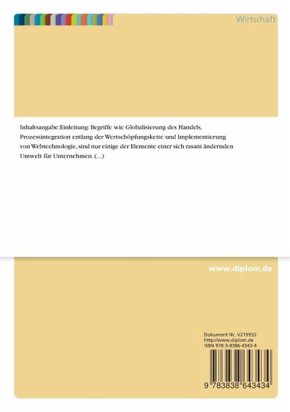 Begriffe wie Globalisierung des Handels, Prozessintegration entlang der Wertschöpfungskette und Implementierung von Webtechnologie, sind nur einige der Elemente einer sich rasant ändernden Umwelt für Unternehmen. Betroffen hiervon sind Firmen jeder Größe, spielen doch in Zeiten einer weltweiten Verbreitung des Internets Faktoren wie Geschwindigkeit (time-to-market) und Servicequalität eine immer bedeutendere Rolle und ermöglichen den schnellen - und nicht zwingend nur den großen - Marktteilnehmern den Ausbau von Marktanteilen.