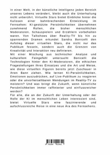In einer Welt, in der künstliche Intelligenz jeden Bereich unseres Lebens verändert, bleibt auch die Unterhaltung nicht unberührt. Virtuelle Stars bietet Einblicke hinter die Kulissen einer bahnbrechenden Entwicklung im Fernsehen: KI-gestützte Persönlichkeiten übernehmen zunehmend Rollen, die bisher menschlichen Moderatoren, Schauspielern und Erzählern vorbehalten waren. Von Talkshows über Reality-TV bis hin zu spannenden Dramen erkundet Sandra Bonicelli den Aufstieg dieser virtuellen Stars, die nicht nur das Publikum fesseln, sondern auch die Grenzen von Kreativität und Interaktion neu definieren.Mit einer Mischung aus technischer Analyse und kulturellem Feingefühl untersucht Bonicelli die Technologien hinter den KI-Moderatoren, die ethischen Fragestellungen ihres Einsatzes und die Art und Weise, wie diese virtuellen Figuren bereits jetzt Zuschauer in ihren Bann ziehen. Wie lernen KI-Persönlichkeiten, Emotionen auszudrücken, auf Live-Publikum zu reagieren oder die unvorhersehbaren Wendungen im Reality-TV zu meistern? Und was bringt die Zukunft, wenn künstliche Persönlichkeiten immer raffinierter und einflussreicher werden?
