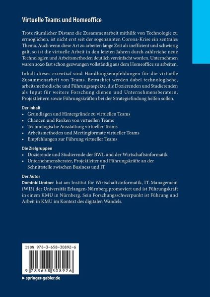 Trotz räumlicher Distanz die Zusammenarbeit mithilfe von Technologie zu ermöglichen, ist nicht erst seit der sogenannten Corona-Krise ein zentrales Thema. Auch wenn diese Art zu arbeiten lange Zeit als ineffizient und schwierig galt, so ist die virtuelle Arbeit in den letzten Jahren durch zahlreiche neue Technologien und Arbeitsmethoden deutlich vereinfacht worden. Unternehmen waren 2020 fast schon gezwungen vollständig aus dem Homeoffice zu arbeiten. Inhalt dieses essential sind Handlungsempfehlungen für die virtuelle Zusammenarbeit von Teams. Betrachtet werden dabei technologische, arbeitsmethodische und Führungsaspekte, die Dozierenden und Studierenden als Input für weitere Forschung dienen und Unternehmensberatern, Projektleitern sowie Führungskräften bei der Strategiefindung helfen sollen.