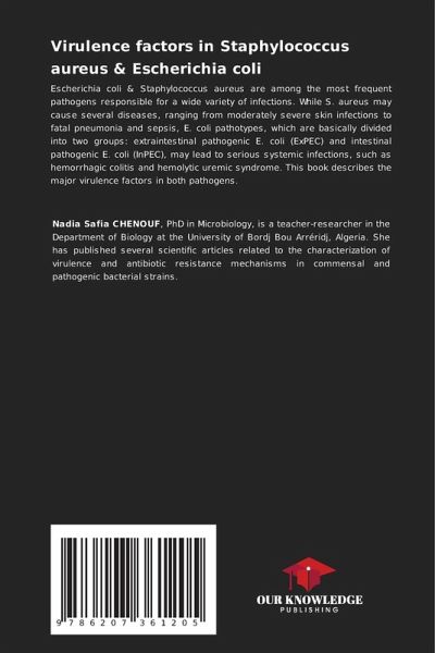 Escherichia coli & Staphylococcus aureus are among the most frequent pathogens responsible for a wide variety of infections. While S. aureus may cause several diseases, ranging from moderately severe skin infections to fatal pneumonia and sepsis, E. coli pathotypes, which are basically divided into two groups: extraintestinal pathogenic E. coli (ExPEC) and intestinal pathogenic E. coli (InPEC), may lead to serious systemic infections, such as hemorrhagic colitis and hemolytic uremic syndrome. This book describes the major virulence factors in both pathogens.