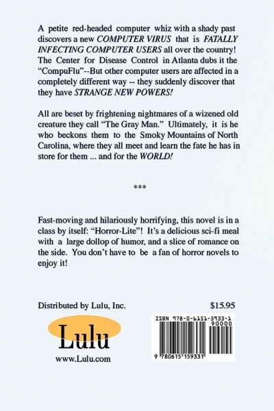 A petite red-headed computer whiz with a shady past discovers a COMPUTER VIRUS that is FATALLY INFECTING COMPUTER USERS all over the country! The Center for Disease Control in Atlanta dubs it "CompuFlu" - But other computer users are affected in a totally different way - they discover that they have STRANGE NEW POWERS! All are beset by frightening nightmares of a wizened old creature they call "The Gray Man." Ultimately it is he who beckons them to the Smoky Mountains of North Carolina, where they all meet and learn the fate he has planned for them ... and for the WORLD!