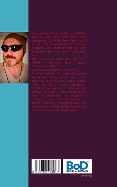 Ein Virus kriecht unheilvoll um die Welt! Wird es uns töten? Was kann man dagegen tun? Sind wir Menschen wirklich verloren? Worte beschreiben Situationen, Aufgaben, die scheinbar unlösbar sind. Gedanken, die wie eine Apokalypse wirken. Eine Geschichte auch, die ein Virus schildert, welches über eigene Fähigkeiten verfügt. Kann so etwas tatsächlich real sein? In einer Welt, die kalt und berechnend, andererseits doch wieder glatt und kantenlos sein will, aber immer wieder reich an Tränen und furchtbaren Schicksalswendungen daherkommt, scheint ein Spiegel wenig fruchtbar zu sein. Und doch kann es gelegentlich helfen, in einen solchen Spiegel zu schauen. Lassen Sie uns gemeinsam die Welt in einem solchen Spiegel betrachten. Lassen Sie uns das Virus bekämpfen!