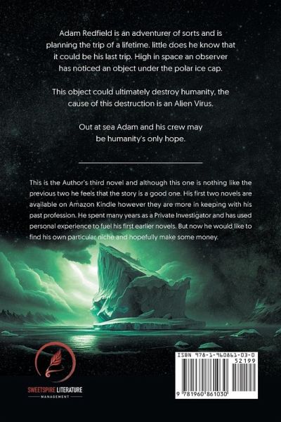 Adam Redfield is an adventurer of sorts and is planning the trip of a lifetime. little does he know that it could be his last trip. High in space an observer has noticed an object under the polar ice cap. This object could ultimately destroy humanity, the cause of this destruction is an Alien Virus. Out at sea Adam and his crew may be humanity's only hope.