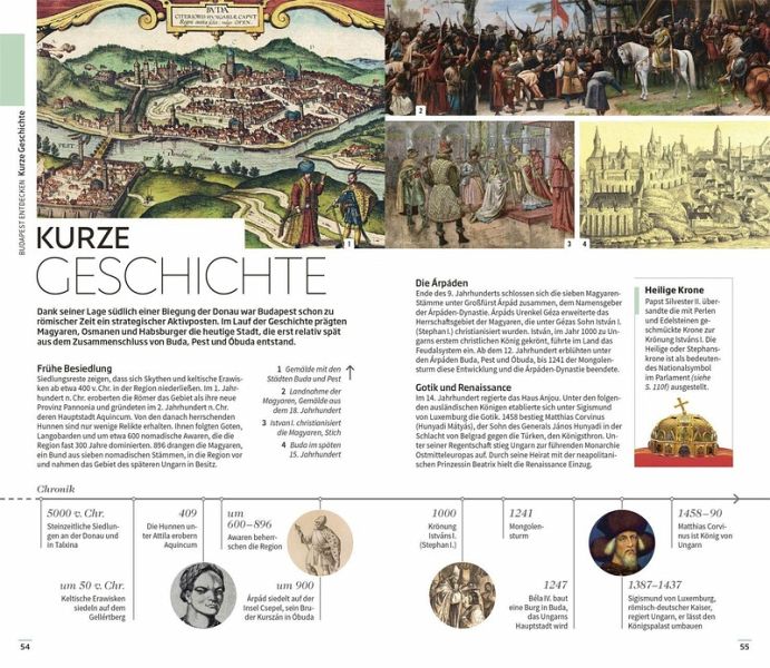 Die einzigartigen 3-D-Illustrationen der Vis-à-Vis Bände bieten Ihnen ganz neue Einblicke in berühmte Gebäude und Sehenswürdigkeiten, darunter Highlights wie die Matthiaskirche und das Parlament. Mit den handgezeichneten Spaziergängen entdecken Sie die schönsten Orte verschiedener Stadtteile - etwa die Altstadt von Buda - auf ganz besondere Art und Weise. Bildgewaltige Themenseiten rücken charakteristische Besonderheiten in den Fokus, wie die zauberhaften Kaffeehäuser, die großartige Food-Szene oder die faszinierende Architektur der Stadt.