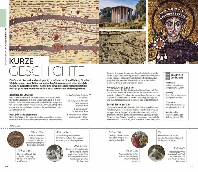 - Ausgewählte Top-Themen: Auf den bildgewaltigen Themenseiten des Italien-Reiseführers stehen charakteristische Besonderheiten im Fokus. Entdecken Sie Italiens schönste Strände, einzigartige architektonische Baukunst oder die exzellente italienische Küche, die in jeder Region
