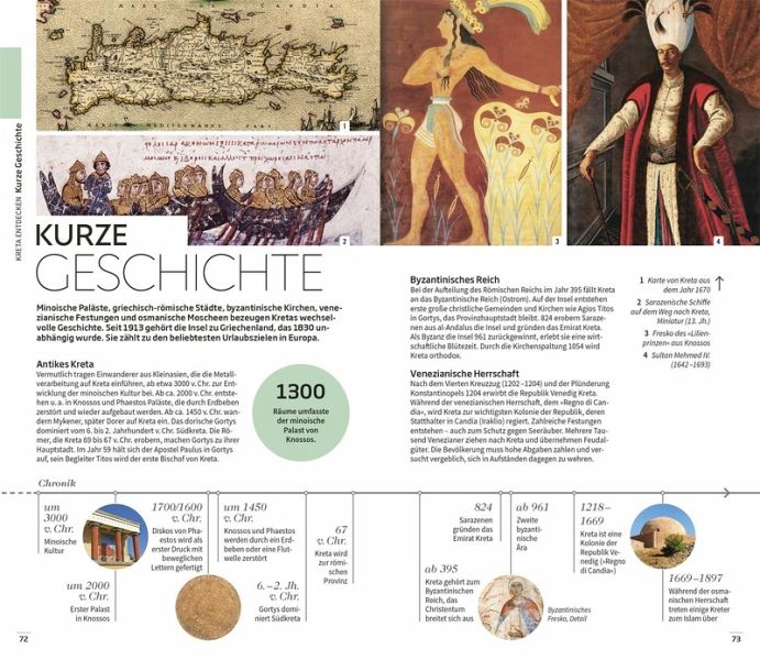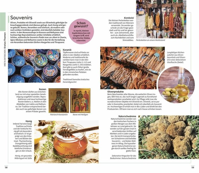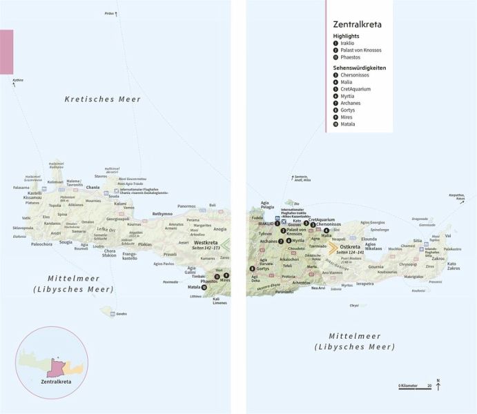 Die einzigartigen 3-D-Illustrationen der Vis-à-Vis Bände bieten Ihnen ganz neue Einblicke in berühmte Gebäude und Sehenswürdigkeiten, darunter Wahrzeichen wie die minoischen Paläste von Knossos und Phaestos. Mit den handgezeichneten Routen für Spaziergänge und Wanderungen entdecken Sie ausgewählte Orte auf ganz besondere Art und Weise. Bildgewaltige Themenseiten rücken charakteristische Besonderheiten - wie die schönsten Strände der Insel, Kretas Kultur und Feste oder die kulinarischen Highlights der kretischen Küche - in den Fokus.