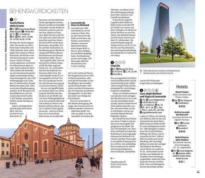 Die einzigartigen 3-D-Illustrationen der Vis-à-Vis Bände bieten Ihnen ganz neue Einblicke in berühmte Gebäude und Sehenswürdigkeiten, darunter Wahrzeichen wie der imposante Mailänder Dom, das glanzvolle Teatro alla Scala und das geschichtsträchtige Castello Sforzesco. Mit den handgezeichneten Spaziergängen entdecken Sie die schönsten Orte verschiedener Stadtteile auf ganz besondere Art und Weise. Bildgewaltige Themenseiten rücken charakteristische Besonderheiten - wie die eindrucksvolle Architektur, das aufregende Nachtleben Mailands und die köstlichen regionalen Spezialitäten - in den Fokus.