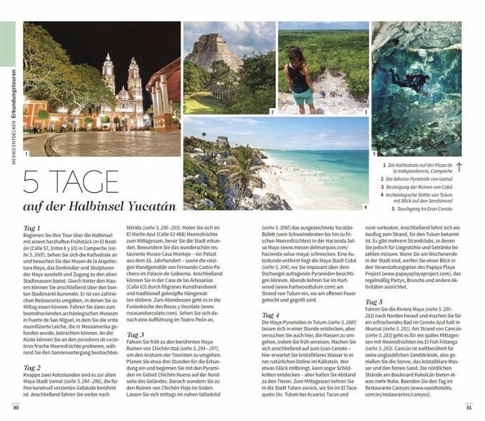 - Das Beste für Ihren Mexico-Urlaub: Ob 3 Tage Kultur in Mexico City, 6 Tage Strandurlaub und Fiesta in Baja Califonia, eine Fahrt entlang der Ruta de la Plata oder eine Reise in Mexicos Vergangenheit auf der Halbinsel Yucatán - der Reiseführer Mexico hält für jeden Urlaub die besten Tipps bereit. Lassen Sie sich von den Tourenplänen inspirieren und tauchen Sie schon vor dem Urlaub in die Highlights ein, die Mexico zu bieten hat.