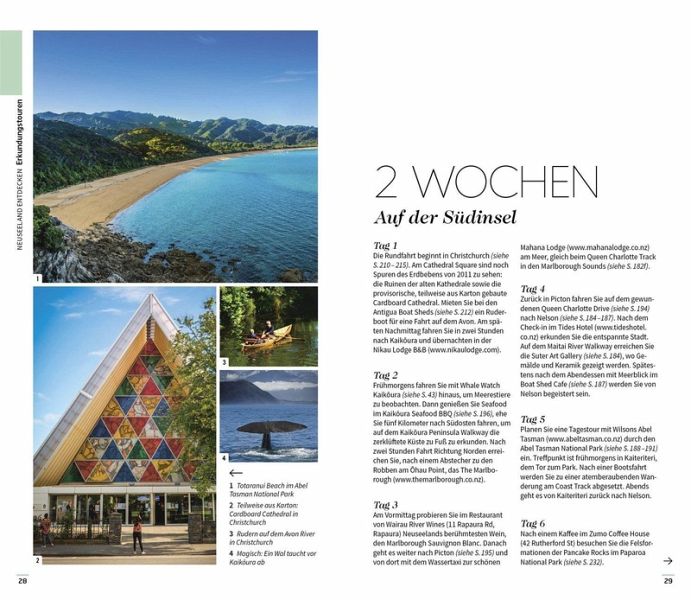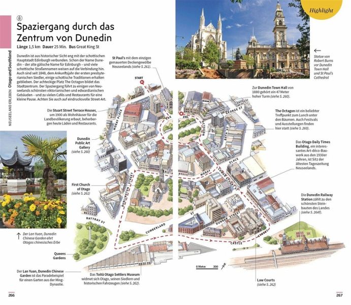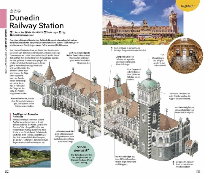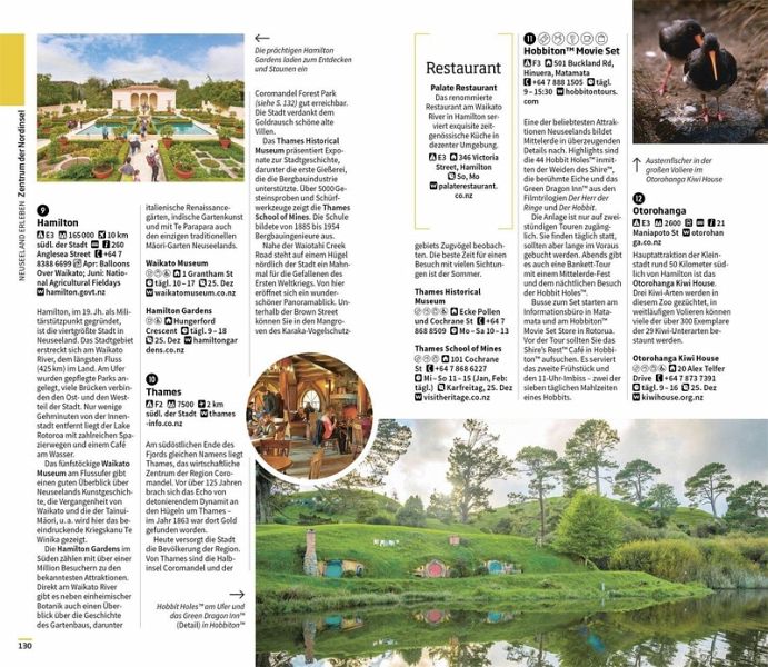 Die einzigartigen 3-D-Illustrationen der Vis-à-Vis Bände bieten Ihnen ganz neue Einblicke in bedeutende Gebäude und Sehenswürdigkeiten, darunter Wahrzeichen wie die Dunedin Railway Station und der Sky Tower in Auckland. Mit den handgezeichneten Spaziergängen entdecken Sie die schönsten Orte verschiedener Stadtteile auf ganz besondere Art und Weise. Bildgewaltige Themenseiten rücken charakteristische Besonderheiten - wie die berühmten Filmkulissen von Herr der Ringe, die wilde Tierwelt oder die ausgezeichneten Weine Neuseelands - in den Fokus.