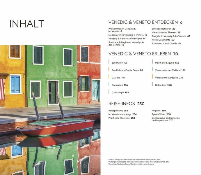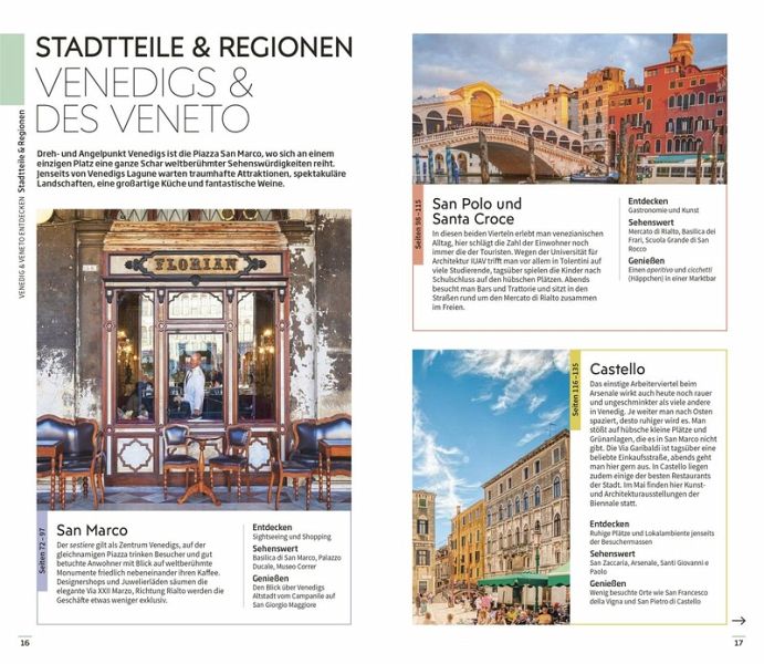 - Die schönsten Stadtteile und Regionen: Die fabelhaftesten Orte stellen sich Ihnenim Reiseführer Venedig & Veneto Viertel für Viertel und Region für Region in ihrer gesamten Pracht vor - mit fundierten und qualitativen Inhalten sowie unvergesslichen Highlights aus Kultur und Alltag. Venedig wird mit den sestieri (Stadtteilen) San Polo und Santa Croce, Dorsoduro, San Marco, Cannaregio, Castello sowie mit den Inseln der Lagune präsentiert. Das Veneto stellt sich mit dem Venezianischen Tiefland, den Dolomiten sowie Verona und dem Gardasee vor.