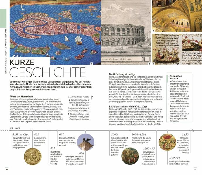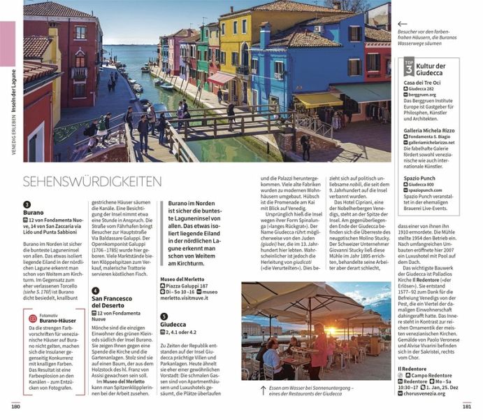 - Ausgewählte Top-Themen: Auf den bildgewaltigen Themenseiten des Venedig & Veneto-Reiseführers stehen charakteristische Besonderheite