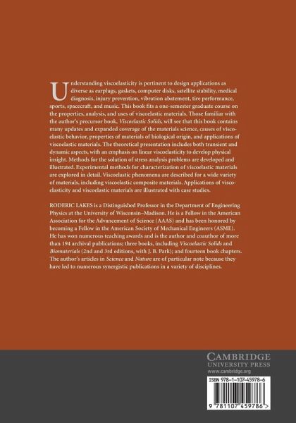 Understanding viscoelasticity is pertinent to design applications as diverse as earplugs, gaskets, computer disks, satellite stability, medical diagnosis, injury prevention, vibration abatement, tire performance, sports, spacecraft explosions, and music. This book fits a one-semester graduate course on the properties, analysis, and uses of viscoelastic materials. Those familiar with the author's precursor book, Viscoelastic Solids, will see that this book contains many updates and expanded coverage of the materials science, causes of viscoelastic behavior, properties of materials of biological origin, and applications of viscoelastic materials. The theoretical presentation includes both transient and dynamic aspects, with emphasis on linear viscoelasticity to develop physical insight. Methods for the solution of stress analysis problems are developed and illustrated. Experimental methods for characterization of viscoelastic materials are explored in detail. Viscoelastic phenomena are described for a wide variety of materials, including viscoelastic composite materials. Applications of viscoelasticity and viscoelastic materials are illustrated with case studies.