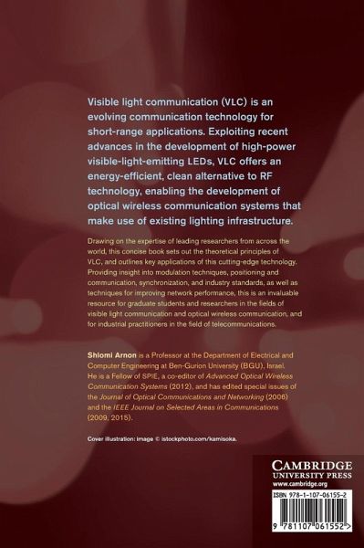 Visible light communication (VLC) is an evolving communication technology for short-range applications. Exploiting recent advances in the development of high-power visible-light emitting LEDs, VLC offers an energy-efficient, clean alternative to RF technology, enabling the development of optical wireless communication systems that make use of existing lighting infrastructure. Drawing on the expertise of leading researchers from across the world, this concise book sets out the theoretical principles of VLC, and outlines key applications of this cutting-edge technology. Providing insight into modulation techniques, positioning and communication, synchronisation, and industry standards, as well as techniques for improving network performance, this is an invaluable resource for graduate students and researchers in the fields of visible light communication, optical wireless communication, and industrial practitioners in the field of telecommunications.