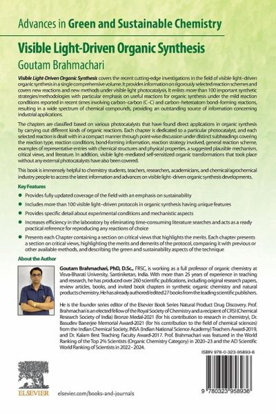 Visible Light-Driven Organic Synthesis covers the recent cutting-edge investigations in the field of visible light- driven organic synthesis in a single comprehensive volume. It provides information on rigorously selected reaction schemes and covers new reactions and new methods under visible light photocatalysis. It enlists more than 100 important synthetic strategies/methodologies with particular emphasis on useful reactions for organic synthesis under the mild reaction conditions reported in recent times involving carbon-carbon (C-C) and carbon-heteroatom bond-forming reactions, resulting in a wide spectrum of chemical compounds, providing an outstanding source of information concerning industrial applications. The chapters are classified based on various photocatalysts that have found direct applications in organic synthesis by carrying out different kinds of organic reactions. Each chapter is dedicated to a particular photocatalyst, and each selected reaction is dealt with in a compact manner through point-wise discussion under distinct subheadings covering the reaction type, reaction conditions, bond-forming information, reaction strategy involved, general reaction scheme, examples of representative entries with chemical structures and physical properties, a suggested plausible mechanism, critical views, and literature. In addition, visible light-mediated self-sensitized organic transformations that took place without any external photocatalysts have also been covered. This book is immensely helpful to chemistry students, teachers, researchers, academicians, and chemical/ agrochemical industry people to access the latest information and advances on visible light-driven organic synthesis developments.