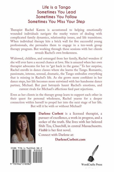 Therapist Rachel Karem is accustomed to helping emotionally wounded individuals navigate the murky waters of dealing with complicated family dynamics, relationship issues, and life transitions. When individual therapy hits a brick wall for five successful professionals, she persuades them to engage in a ten-week group therapy program. But working through these sessions with her clients reveals Rachel's own brokenness. Widowed, childless, and estranged from her family, Rachel wonders if she will ever have a second chance at love. She is amazed when her own therapist advocates for her to "get back in the game." To her surprise, Rachel enrolls in dance classes where she learns the Tango. Romantic, passionate, intense, sensual, dramatic, the Tango embodies everything that is missing in Rachel's life. As she grows more confident in her dance steps, her life becomes more entwined with her handsome dance partner, Michael. But past betrayals haunt Rachel's emotions, and current rivals for Michael's affections feed past rejections. Even as her clients in the therapy group learn to support each other in their quest for personal wholeness, Rachel yearns for a deeper connection within herself to propel her into the next stage of her life. But will it be with or without Michael?