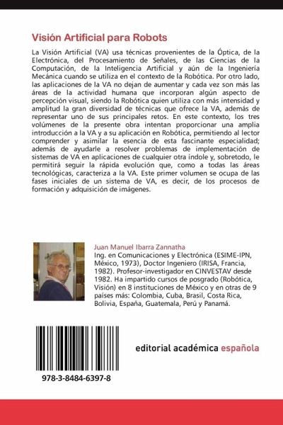 La Visión Artificial (VA) usa técnicas provenientes de la Óptica, de la Electrónica, del Procesamiento de Señales, de las Ciencias de la Computación, de la Inteligencia Artificial y aún de la Ingeniería Mecánica cuando se utiliza en el contexto de la Robótica. Por otro lado, las aplicaciones de la VA no dejan de aumentar y cada vez son más las áreas de la actividad humana que incorporan algún aspecto de percepción visual, siendo la Robótica quien utiliza con más intensidad y amplitud la gran diversidad de técnicas que ofrece la VA, además de representar uno de sus principales retos. En este contexto, los tres volúmenes de la presente obra intentan proporcionar una amplia introducción a la VA y a su aplicación en Robótica, permitiendo al lector comprender y asimilar la esencia de esta fascinante especialidad; además de ayudarle a resolver problemas de implementación de sistemas de VA en aplicaciones de cualquier otra índole y, sobretodo, le permitirá seguir la rápida evolución que, como a todas las áreas tecnológicas, caracteriza a la VA. Este primer volumen se ocupa de las fases iniciales de un sistema de VA, es decir, de los procesos de formación y adquisición de imágenes.