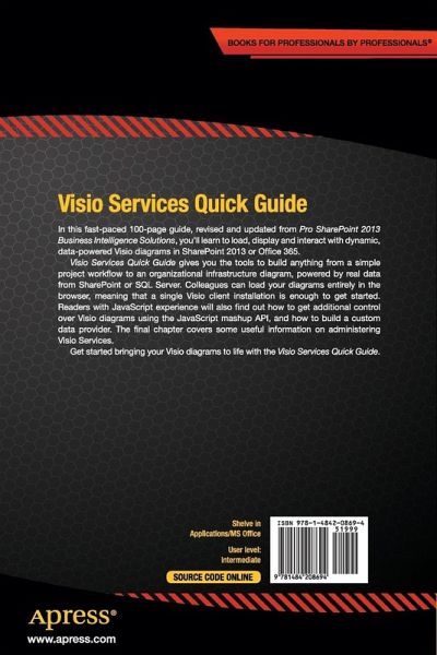 Visio Services Quick Guide gives you the tools to build anything from a simple project workflow to an organizational infrastructure diagram, powered by real data from SharePoint or SQL Server. Colleagues can load your diagrams entirely in the browser, meaning that a single Visio client installation is enough to get started. Readers with JavaScript experience will also find out how to get additional control over Visio diagrams using the JavaScript mashup API, and how to build a custom data provider. The final chapter covers some useful information on administering Visio Services.