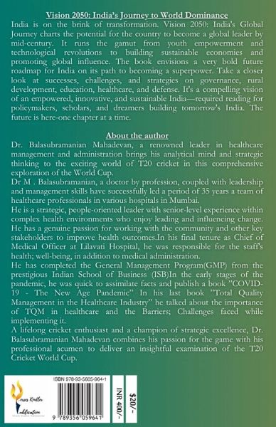 Vision 2050: India's Journey to World Dominance India is on the brink of transformation. Vision 2050: India's Global Journey charts the potential for the country to become a global leader by mid-century. It runs the gamut from youth empowerment and technological revolutions to building sustainable economies and promoting global influence. The book envisions a very bold future roadmap for India on its path to becoming a superpower. Take a closer look at successes, challenges, and strategies on governance, rural development, education, healthcare, and defense. It's a compelling vision of an empowered, innovative, and sustainable India-required reading for policymakers, scholars, and dreamers building tomorrow's India. The future is here-one chapter at a time.