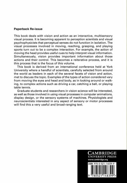 The visual processes involved in moving, reaching, grasping, and playing sports are complex interactions. For example, the action of moving the head provides useful cues to help interpret the visual information. Simultaneously, vision can provide important information about the actions and their control. This becomes a reiterative process. This process, and the interactions between vision and action, are the foci of this volume. This book contains contributions from scientists who are leaders in each of the several facets of the subject. Examples of the types of action considered vary from moving the eyes and head and body, as in looking around or walking, to complex actions such as driving a car, catching a ball, or playing table tennis. Graduate students and researchers in vision science, as well as physiologists and neuroscientists interested in any aspect of sensory or motor processes, will find this a useful and broad-ranging book.