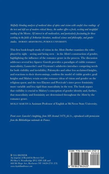 `Skilfully blending analysis of medieval ideas of optics and vision with careful close readings of the text and deft use of modern critical theory, the author offers a fresh, exciting and insightful reading of the Morte. Of interest to all medievalists, and particularly fascinating for those working in the fields of Arthurian literature, medieval science and philosophy, and gender studies.' Dorsey Armstrong, Purdue University. This first book-length study of vision in the Morte Darthur examines the roles played by sight - seeing and being seen - in the Morte's construction of gender, highlighting also the influence of the romance genre in this process. The discussion addresses several key figures: Gareth provides a paradigm of visible romance masculinity; Launcelot's and Trystram's adulteries introduce competing needs for both visibility and invisibility; Palomydes and other less acclaimed knights, and reactions to their shortcomings, confirm the model of visible gender; grail knights and Malory retain secular romance ideas of vision and gender on the religious quest; and the two Elaynes and Percivale's sister prove femininity more variable and less rigid than masculinity in the text. The book argues that visibility is crucial to Malory's conception of gender identity and, further, that masculinity and femininity are determined throughout the Morte by the romance genre. MOLLY MARTIN is Assistant Professor of English at McNeese State University.