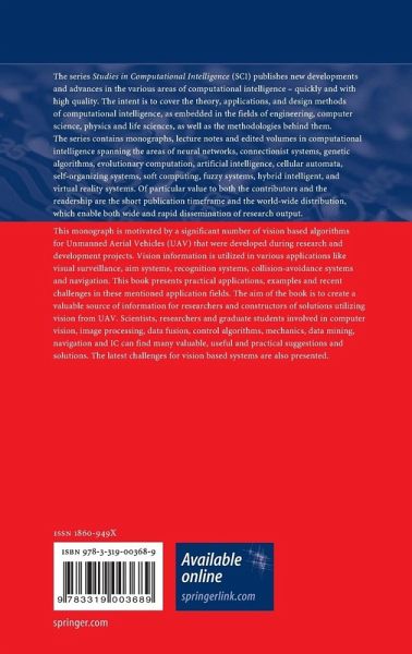 This monograph is motivated by a significant number of vision based algorithms for Unmanned Aerial Vehicles (UAV) that were developed during research and development projects. Vision information is utilized in various applications like visual surveillance, aim systems, recognition systems, collision-avoidance systems and navigation. This book presents practical applications, examples and recent challenges in these mentioned application fields. The aim of the book is to create a valuable source of information for researchers and constructors of solutions utilizing vision from UAV. Scientists, researchers and graduate students involved in computer vision, image processing, data fusion, control algorithms, mechanics, data mining, navigation and IC can find many valuable, useful and practical suggestions and solutions. The latest challenges for vision based systems are also presented.