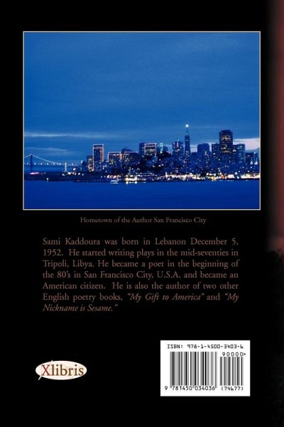 Sami Kaddoura was born in Lebanon December 5, 1952. He started writing plays in the mid-seventies in Tripoli, Libya. He became a poet in the beginning of the 80's in San Francisco City, U.S.A. and became an American citizen. He is also the author of two other English poetry books, "My Gift to America" and "My Nickname is Sesame."