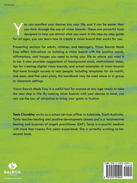 You can manifest your desires into your life, and it can be easier than you think through the use of vision boards. These are powerful tools designed to help you attract what you want. In this step-by-step guide for all ages, you can learn how to create a vision board that works for you. Presenting sections for adults, children, and teenagers, Vision Boards Made Easy offers instructions on building a vision board with the positive words, affirmations, and images you need to bring your life to where you want it to be. It also provides suggestions of background music, motivational ideas, tips for creating digital vision boards, and actual examples of vision boards that have brought success to real people. Including templates for six-month, one-year, and five-year plans, this handbook may be used alone or in group or classroom settings. Vision Boards Made Easy is a useful tool for anyone at any age ready to take the next step in life. By making vision boards with your desires in mind, you can use the law of attraction to bring your goals to fruition.