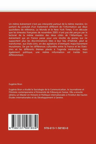 Un même événement n'est pas interprété partout de la même manière. En partant du postulat d'un traitement différent de l'information par deux quotidiens de référence, Le Monde et le New York Times, il en découle que les émeutes françaises de novembre 2005 n'ont pas été perçue par le lectorat de la même manière des deux côtés de l'Atlantique. Un événement qui en France passe pour une révolte de jeunes qui ne supportent plus les discriminations liées à leur lieu d'habitat, peut se transformer, aux Etats-Unis, en des agitations d'immigrés majoritairement musulmans. De par les différences culturelles entre la France et les Etats-Unis et les différents thèmes placés à l'agenda médiatique, mais également politique, une même information est traitée bien différemment.
