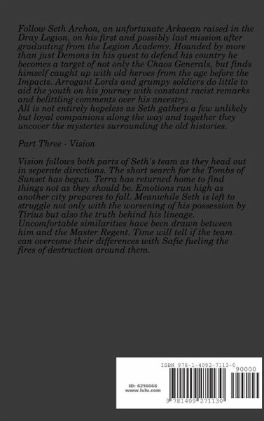 Vision follows both parts of Seth's team as they head out in seperate directions. The short search for the Tombs of Sunset has begun. Emotions run high as another city prepares to fall. Meanwhile Seth is left to struggle not only with the worsening of his possession by Tirius but also the truth behind his lineage. Time will tell if the team can overcome their differences with Safie fueling the fires of destruction around them. The third action filled stage of the Island of Alternity saga.