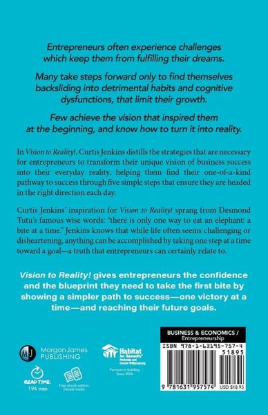 Vision to Reality provides a simple set of steps to help entrepreneurs realize their vision for their business and "clear the fog" for everyone involved to get on board with executing the vision.