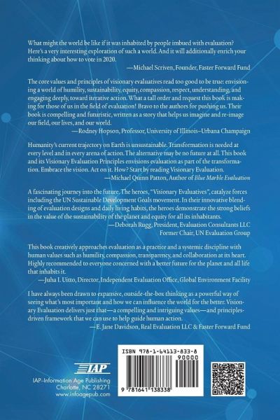 Take a journey to 2030 where Visionary Evaluatives abound and link with one another in actively bringing about a sustainable, equitable future. Utilizing a creative storytelling approach, Visionary Evaluation for a Sustainable, Equitable Future brings forward the centrality of values in conjunction with the role of evaluation in building a future of well-being for people, nature, and planet. Visionary Evaluatives are guided by six principles. Those principles highlight a commitment to equity and the sustainability of nature as core values. They emphasize an orientation of humility, compassion, and transparency as Visionary Evaluatives engage with others in a world of living, entangled systems with both obvious and hidden intersectionalities. They require Visionary Evaluatives to engage in deep praxis-mindful and challenging reflection on what is being learned through the intersection of values, iterative action and inquiry, theory, outcomes, and vision. A diverse group of chapter authors share their wisdom through envisioning 2030 and what it might mean to move in the world applying aspects of the Visionary Evaluative Principles. Through Visionary Evaluation for a Sustainable, Equitable Future, you will learn about how you can contribute to a sustainable, equitable future not only in evaluations, as either users or practitioners, but also in your daily actions and lives.