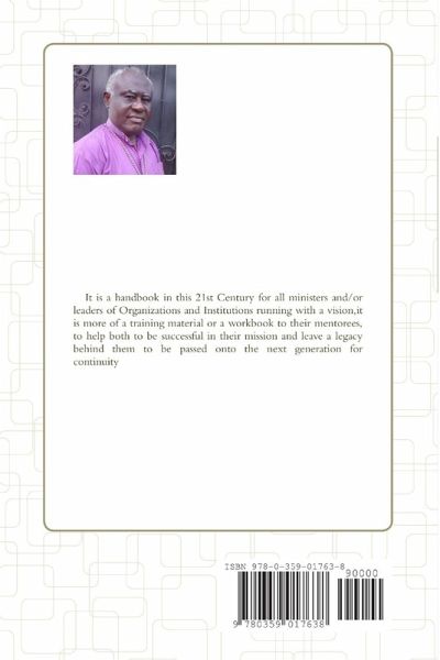 This book has been geared towards orientating visionary leaders to be sharp in perspectives and give them focus to help them lead well their followers and give them sense of direction, so that they can be of like-mind as well as to clear the mental and spiritual sight and revive those with dull vision for the purpose of letting a legacy behind even after they might have crossed to the other side of the world.