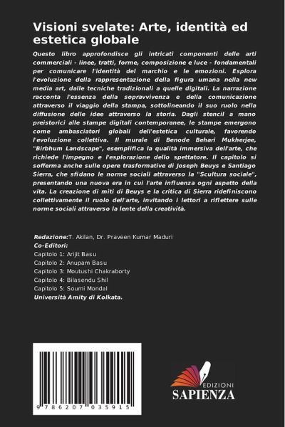 Questo libro approfondisce gli intricati componenti delle arti commerciali - linee, tratti, forme, composizione e luce - fondamentali per comunicare l'identità del marchio e le emozioni. Esplora l'evoluzione della rappresentazione della figura umana nella new media art, dalle tecniche tradizionali a quelle digitali. La narrazione racconta l'essenza della sopravvivenza e della comunicazione attraverso il viaggio della stampa, sottolineando il suo ruolo nella diffusione delle idee attraverso la storia. Dagli stencil a mano preistorici alle stampe digitali contemporanee, le stampe emergono come ambasciatori globali dell'estetica culturale, favorendo l'evoluzione collettiva. Il murale di Benode Behari Mukherjee, "Birbhum Landscape", esemplifica la qualità immersiva dell'arte, che richiede l'impegno e l'esplorazione dello spettatore. Il capitolo si sofferma anche sulle opere trasformative di Joseph Beuys e Santiago Sierra, che sfidano le norme sociali attraverso la "Scultura sociale", presentando una nuova era in cui l'arte influenza ogni aspetto della vita. La creazione di miti di Beuys e la critica di Sierra ridefiniscono collettivamente il ruolo dell'arte, invitando i lettori a riflettere sulle norme sociali attraverso la lente della creatività.