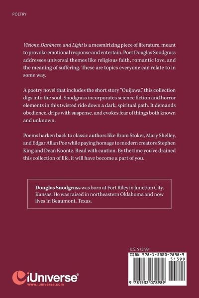 A mesmirizing piece of literature, meant to provoke and emotional response and be highly entertaining. Something for everyone.It digs into your soul . Demanding obedience, yet dripping with suspense of things known and unk b your best friend nown. Like a twisted ride on a dark spiritual path. By the time you have drained this manuscript of its life. It will b your best friend