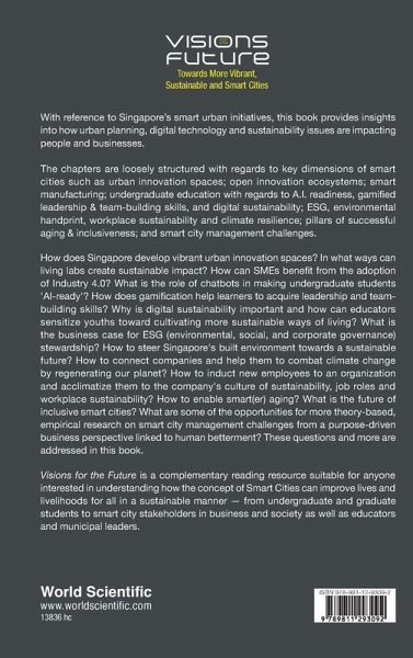 With reference to Singapore's smart urban initiatives, this book provides insights into how urban planning, digital technology and sustainability issues are impacting people and businesses. The chapters are loosely structured with regards to key dimensions of smart cities such as urban innovation spaces; open innovation ecosystems; smart manufacturing; undergraduate education with regards to A.I. readiness, gamified leadership & team-building skills, and digital sustainability; ESG, environmental handprint, workplace sustainability and climate resilience; pillars of successful aging & inclusiveness; and smart city management challenges. How does Singapore develop vibrant urban innovation spaces? In what ways can living labs create sustainable impact? How can SMEs benefit from the adoption of Industry 4.0? What is the role of chatbots in making undergraduate students 'AI-ready'? How does gamification help learners to acquire leadership and team-building skills? Why is digital sustainability important and how can educators sensitize youths toward cultivating more sustainable ways of living? What is the business case for ESG (environmental, social, and corporate governance) stewardship? How to steer Singapore's built environment towards a sustainable future? How to connect companies and help them to combat climate change by regenerating our planet? How to induct new employees to an organization and acclimatize them to the company's culture of sustainability, job roles and workplace sustainability? How to enable smart(er) aging? What is the future of inclusive smart cities? What are some of the opportunities for more theory-based, empirical research on smart city management challenges from a purpose-driven business perspective linked to human betterment? These questions and more are addressed in this book. Visions for the Future is a complementary reading resource suitable for anyone interested in understanding how the concept of Smart Cities can improve lives and livelihoods for all in a sustainable manner - from undergraduate and graduate students to smart city stakeholders in business and society as well as educators and municipal leaders.